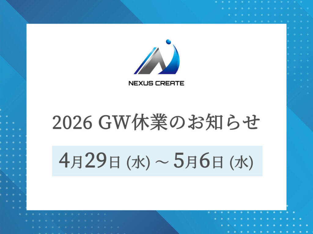 誠に勝手ながら、下記の期間をGW休業とさせていただきます。 2026年4月29日(水)~5月6日(水) 期間中にいただいたお問い合わせにつきましては、5月7日(木)以降に順次対応させていただきます。ご不便をおかけいたしますが、何卒ご理解のほどよろしくお...
